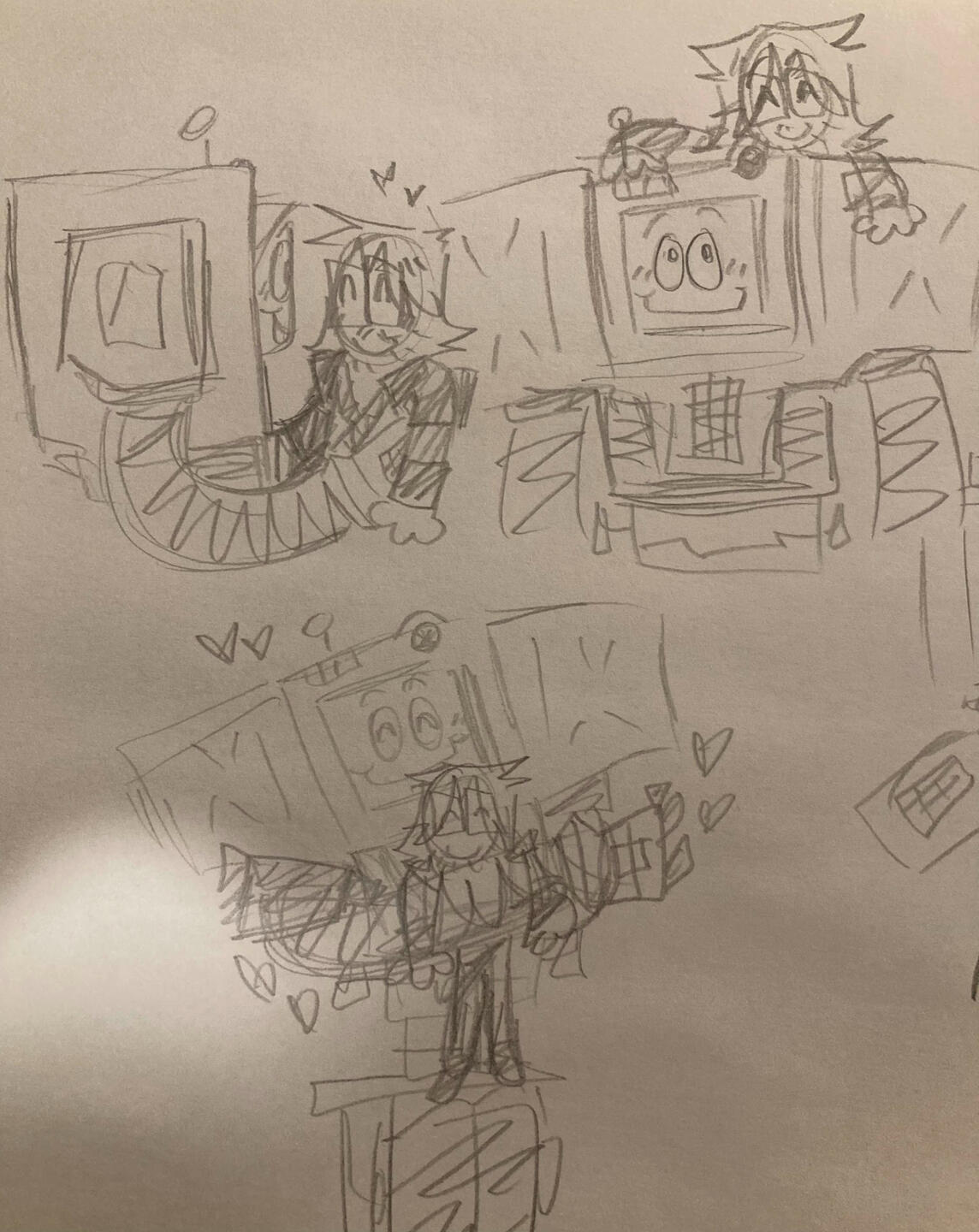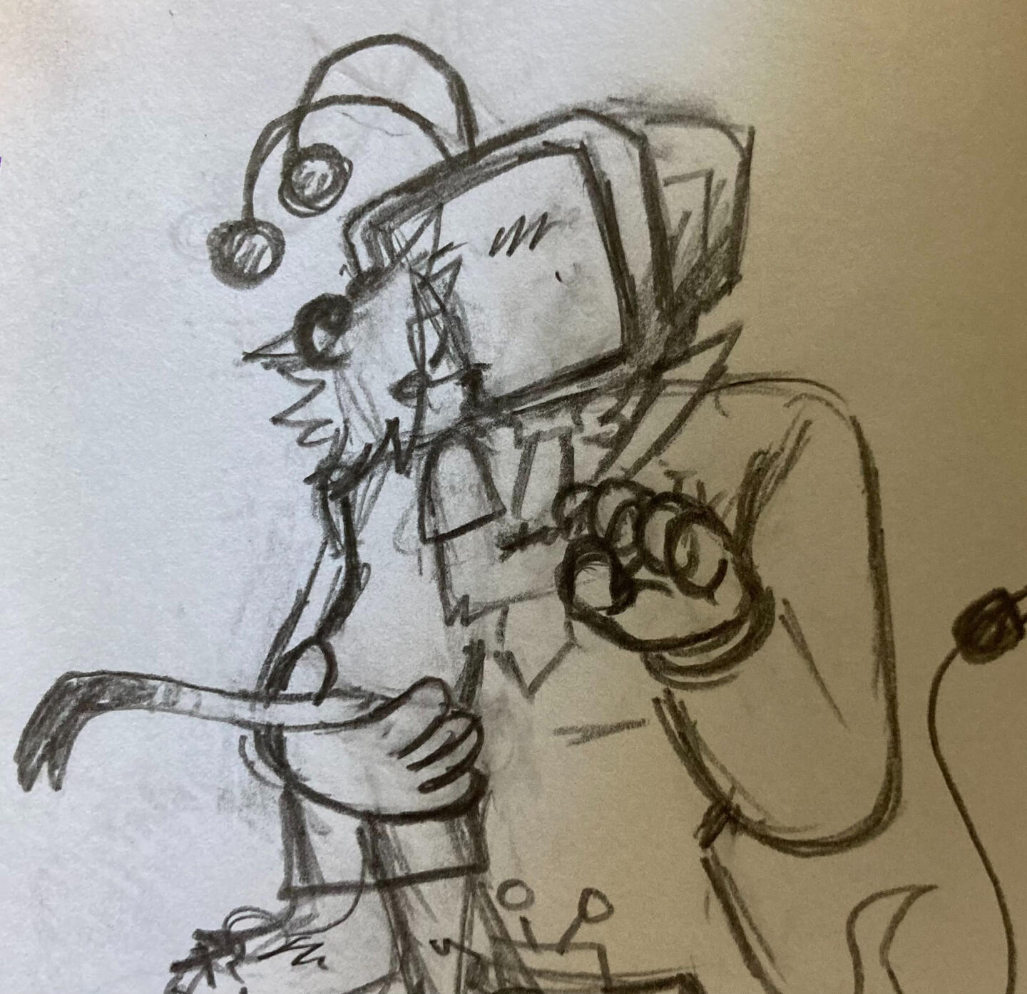The character I typically draw Clippy with is Dial, an aptly named older-style Windows dialog box. He's more a "self-insert" of sorts than just a sonaThese two come from a very unestablished universe, where they work as underpaid employees at Microsoft (the other employees are characters like several of the other office assistants, Cortana, CoPilot, etc). They fell in love slowly by bonding at the bar every Friday after work. They got married at some point "for financial benefits" (idk im making this up as i go). They live together in an apartment since pay is so lousy and the city's expensive, but they make do.
