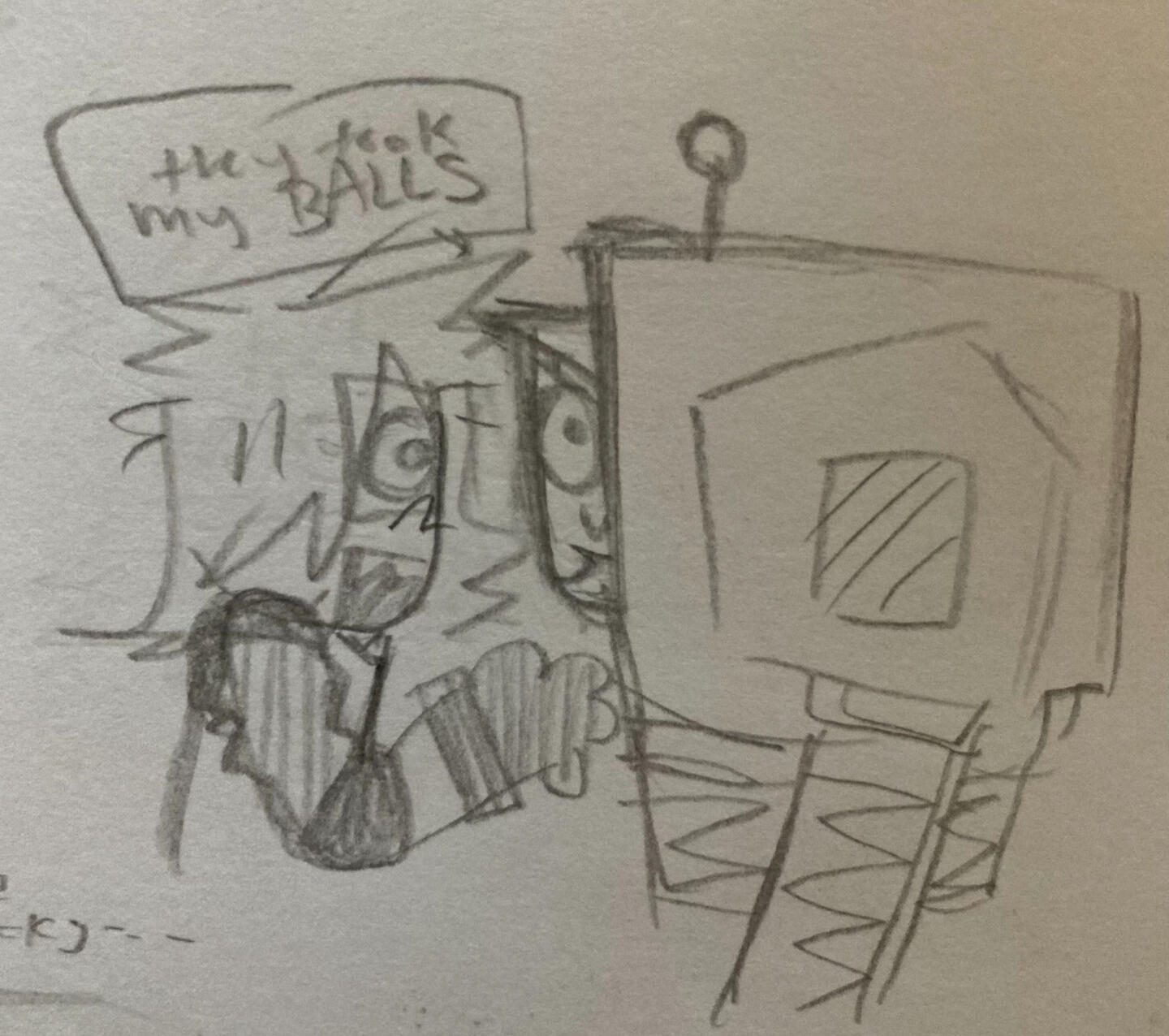 I usually draw him with my Courier Six, who's really just my sona but in universe (got shot in the head)After the independent ending, the Courier has taken responsibility of New Vegas. Yes Man had his assertive upgrade and remains mostly in the Lucky 38 terminal, but will on occasion tag along to nearby missions with Six via Securitron. Six pretty much took a break from running around the Mojave though, and tends to stay in the Lucky 38 with his companions and, of course, Yes Man. The two love each other dearly, but Six definitely fell first.